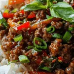 This Spicy Ground Beef Stir-Fry Bowl is a quick and flavorful one-pan meal that brings together savory beef, crisp vegetables, and a spicy, umami-rich sauce — all served over fluffy rice. It’s perfect for busy weeknights when you want something satisfying without spending hours in the kitchen. Every bite delivers a balance of heat, saltiness, and texture, making it an easy go-to for anyone who loves bold flavors and quick cooking.