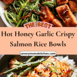 These 30 Minute Chili Honey Garlic Salmon Bowls feature crispy roasted salmon tossed in a sticky-sweet and spicy garlic glaze, served with vegetables and rice. A quick, flavorful, and satisfying meal ideal for busy weeknights.
