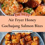Air fryer honey gochujang salmon bites are sweet, savory, and mildly spicy, with a caramelized exterior and juicy center. This protein-packed dish comes together easily and is perfect for busy weeknights or meal prep.