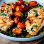 Juicy oven-baked chicken breasts paired with sweet roasted cherry tomatoes create a fresh Mediterranean-inspired dinner. Ready in under 30 minutes, this flavorful dish delivers tender chicken, caramelized tomatoes, and fragrant herbs in every bite.