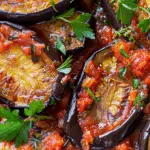 This comforting Balkan-inspired dish combines silky roasted eggplant slices with a simple yet intensely flavorful tomato garlic sauce. Finished with fresh parsley and creamy feta cheese, it’s a perfect summer main course that’s equally delicious served warm or chilled.