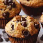 Soft, moist banana muffins loaded with melty chocolate chips, perfect for breakfast or a snack, made with simple pantry ingredients and ripe bananas.