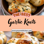 I store leftover garlic knots in an airtight container at room temperature for up to 2 days, or refrigerate for up to 5 days. To freeze, I skip the garlic butter topping, wrap them well, and store for up to 2 months. When I’m ready to enjoy them, I thaw, warm in the oven at 300°F, and brush with fresh garlic butter.