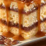 Butter Pecan Praline Poke Cake is a rich, moist dessert infused with buttery flavor, toasted pecans, and luscious caramel sauce that seeps into every bite. Finished with a light whipped cream topping and a sprinkle of crunchy pecans, this cake is the perfect balance of sweet, nutty, and creamy. It’s an irresistible treat that feels special enough for celebrations yet simple enough for everyday baking.