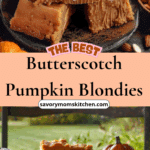 Soft, chewy, and packed with fall flavor, these Butterscotch Pumpkin Blondies combine pumpkin puree, warm spices, and gooey butterscotch chips into a rich dessert bar perfect for autumn.