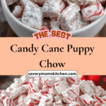 This festive Candy Cane Puppy Chow is a sweet, peppermint-flavored twist on a classic snack mix. Coated in red-tinted white chocolate, crushed candy canes, and powdered sugar, it’s perfect for holiday gifting or snacking.
