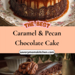 This caramel and pecan chocolate cake is a rich, indulgent dessert made with moist chocolate layers, silky homemade caramel, toasted pecans, and a smooth chocolate ganache topping. Every bite combines deep cocoa flavor with buttery caramel and crunchy nuts, making it perfect for celebrations or special occasions. Caramel & Pecan Chocolate Cake