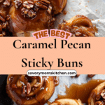 Soft, fluffy cinnamon rolls baked in a rich caramel sauce with pecan pralines, these Caramel Pecan Sticky Buns are a gooey, golden treat perfect for breakfast, brunch, or holidays. Flip them out of the pan to reveal a stunning glossy topping.