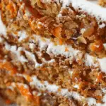 A moist and spiced carrot cake made with grated carrots, pineapple, raisins, and walnuts, then topped with tangy cream cheese frosting. Perfect for celebrations or as a cozy homemade dessert.