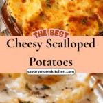 Cheesy Scalloped Potatoes are a rich and comforting side dish made with thinly sliced Yukon Gold potatoes layered in a creamy garlic-onion sauce and topped with cheddar and Parmesan cheese. Perfect for family dinners or holiday gatherings.