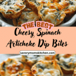 I find these Cheesy Spinach Dip Bites irresistibly savory and a breeze to make. They’re crowd-pleasers—flavorful, convenient, and ideal for any gathering. I’m always thrilled when they’re a hit, and I hope you’ll enjoy them as much as I do!