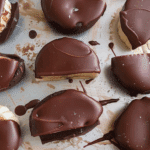 Frozen banana slices topped with a smooth chocolate–peanut butter coating for an easy, no-bake treat that’s creamy, indulgent, and perfect for snacking or dessert.