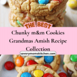 Thick and chewy classic M&M cookies with a soft buttery dough and colorful chocolate candies, inspired by traditional Amish-style baking.