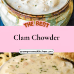 A rich and comforting clam chowder made with tender potatoes, chopped clams, and a creamy, seasoned broth that is perfect for cozy meals.