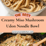 Creamy Miso Mushroom Udon is a quick and comforting noodle dish made with chewy udon noodles, sautéed mushrooms, and a savory miso cream sauce. Rich in umami and ready in just 15 minutes, it’s the perfect cozy meal for busy weeknights.