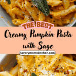 Creamy Pumpkin Sage Pasta is a quick and comforting fall dish made with velvety pumpkin puree, fresh sage, warm spices, and parmesan cheese. It’s a cozy vegetarian meal that comes together in just 25 minutes.