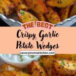 Crispy garlic potato wedges are oven-baked to golden perfection, with a crunchy exterior and fluffy interior. Seasoned with garlic, paprika, and herbs, they’re a delicious and easy side or snack.