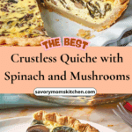 This Crustless Quiche with Spinach and Mushrooms is a light, flavorful, and nutritious dish made without the crust. It features tender eggs, creamy cheese, and a savory mix of mushrooms and spinach for an easy gluten-free breakfast, brunch, or dinner.