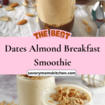 A creamy and naturally sweet Dates Almond Breakfast Smoothie made with soft dates, almond butter, and milk of choice. This nourishing drink is quick to prepare, refined sugar-free, and perfect for a satisfying breakfast or energizing snack.
