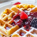 Golden, fluffy buttermilk waffles served with a tangy-sweet homemade mixed berry and lemon preserve. Perfect for cozy mornings, weekend brunch, or a special breakfast treat that’s easy to make and freezer-friendly.