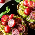 A quick, plant-based avocado toast topped with juicy cherry tomatoes and served on crisp sourdough. Perfect for a healthy breakfast, snack, or light lunch in just 5 minutes.