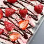 This Easy Strawberry Yogurt Bark is a no-bake, high-protein, and gluten-free frozen snack made with Greek yogurt, fresh strawberries, nut butter, and a chocolate drizzle. It’s refreshing, creamy, and perfect for healthy snacking or dessert.