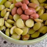 Fava beans are large, flat beans with a slightly nutty and earthy flavor commonly used in Middle Eastern and Mediterranean cooking.