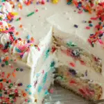 This Funfetti Cheesecake Cake is a festive and indulgent dessert that layers rich vanilla cheesecake between two fluffy funfetti cake layers, all frosted in vanilla buttercream and topped with colorful sprinkles. It’s the ultimate celebration cake.