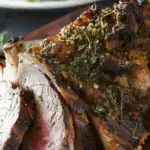 This garlic-and-herb-crusted leg of lamb is an elegant main course that’s surprisingly easy to prepare. With juicy, tender meat encased in a flavorful crust of rosemary, thyme, and garlic, it’s the kind of dish I like to serve when I want to impress without stressing. Roasted over a bed of vegetables, it’s hearty, aromatic, and perfect for holiday gatherings or a special Sunday dinner.