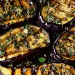 Char-grilled eggplant slices brushed with fragrant garlic-herb oil—tender with smoky, golden edges, infused with parsley and oregano. Perfect hot or cold as a vibrant, healthy side or star of a veggie-forward meal.