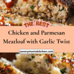 A moist and flavorful chicken meatloaf infused with garlic, herbs, and Parmesan, topped with a buttery garlic-Parmesan glaze. Easy to make and perfect for family dinners.