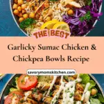 Garlicky sumac chicken and chickpea bowls are a satisfying mix of warm spices, bright lemon, and creamy hummus sauce, with crispy roasted chickpeas adding the perfect crunch. Once you try this bowl-style dinner, it’s easy to remix with different grains, extra vegetables, or a bigger batch for meal prep.