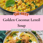 This golden coconut lentil soup is a comforting, nourishing dish packed with warm spices, creamy coconut milk, and hearty lentils. It’s a simple yet flavorful recipe that brings together wholesome ingredients into a rich and satisfying bowl, perfect for cozy evenings or a healthy weekday meal.