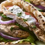 This recipe features tender shredded chicken dressed in creamy, herby tzatziki sauce and tucked into warm whole wheat pita pockets along with crisp red onion and creamy avocado. It’s easy, light, and fresh—but also hearty enough to feel like a real meal. The combination of Greek-style flavors makes it a crowd-pleaser, and because much of it comes together in one bowl, it’s ideal for busy weeknights or meal-prep lunches.