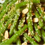 Short and crisp green beans are pan-sautéed with aromatic garlic and shallot, finished with fresh lemon juice and a crunch of toasted sliced almonds. It’s a light, vibrant side dish that elevates green beans into something special.