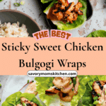 These Grilled Chicken Bulgogi Lettuce Wraps are my favorite kind of warm-weather dinner. The chicken is marinated in a sweet, savory, and slightly spicy Korean-inspired bulgogi sauce that caramelizes beautifully on the grill. I love how it pairs with crisp lettuce, sticky rice, tangy pickled veggies, and creamy gochujang aioli. Every bite is bold, fresh, and deeply satisfying. It’s one of those meals I crave all summer long—easy to prepare, easy to customize, and always a hit.