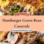 A hearty, comforting Hamburger Green Bean Casserole combining savory ground beef, tender green beans, creamy mushroom sauce, melted cheddar, and crispy fried onions. Perfect for busy weeknights, potlucks, or cozy family dinners.