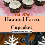 These Haunted Forest Cupcakes are a festive and creative Halloween dessert made with rich chocolate cupcakes, topped with a swirl of ghostly white icing and finished with spooky chocolate trees. They’re fun to assemble, visually striking, and make a perfect treat for Halloween parties or themed gatherings. I enjoy making these because they bring together baking, decorating, and a little Halloween magic all in one bite.