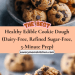 This healthy edible cookie dough is soft, scoopable, and made with wholesome ingredients. Naturally dairy-free, gluten-free, and refined sugar-free, it’s a safe-to-eat, no-bake treat perfect for snacking or dessert.
