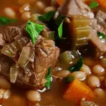 A hearty and comforting slow-cooked soup made with tender beef, pearl barley, vegetables, and savory herbs in a rich broth. Perfect for cold nights, meal prep, or feeding a crowd, this one-pot dish is satisfying, nourishing, and full of flavor.