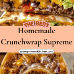 This homemade Crunchwrap Supreme is a delicious, customizable version of the fast-food classic, layered with seasoned beef, melty cheese, crisp tostada, fresh veggies, and wrapped in a toasted tortilla for the perfect balance of flavor and texture.