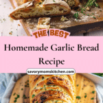 This Homemade Garlic Bread is a classic, crowd-pleasing side dish made with a crusty loaf, rich garlic butter, fresh herbs, and a touch of cheese. It’s quick to prepare and perfectly crisp on the outside while soft and flavorful on the inside. Whether served with pasta, soups, or salads, this garlic bread is always a welcome addition to the table. Homemade Garlic Bread Recipe