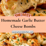 These warm, soft, cheesy garlic butter bombs are the perfect pull-apart snack. Fluffy dough, gooey melted cheese, and a rich garlic-herb butter finish make them a crowd-pleasing appetizer for any occasion.