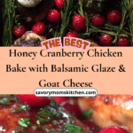 Honey cranberry chicken bake with balsamic glaze and goat cheese is a simple yet flavorful recipe that transforms everyday ingredients into a memorable meal. With its sweet and savory balance and easy preparation, it’s a dish you’ll want to keep in your regular dinner rotation.