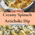 A creamy, cheesy baked spinach and artichoke dip made with a blend of cheeses, garlic, and herbs. Perfectly warm and bubbly, this crowd-pleasing appetizer is best served with chips, bread, or veggies for dipping.