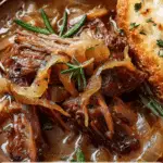 French Onion Beef Short Rib Soup is a comforting, slow-cooked dish that combines caramelized onions, tender beef short ribs, and a savory broth topped with melty cheese and toasted baguette for a luxurious, cozy experience.