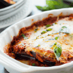 A lighter, no-breading Eggplant Parmesan made with roasted eggplant, a quick homemade marinara, and layers of gooey mozzarella and Parmesan. Perfectly cheesy and comforting without being heavy.