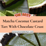 This matcha coconut custard tart with chocolate crust is a refined, refreshing dessert that combines beautiful flavors and textures in every bite. With its airy filling, crisp crust, and naturally balanced sweetness, it’s a memorable treat that feels both nourishing and indulgent. Whether served at a gathering or enjoyed as a special homemade dessert, it’s a recipe worth revisiting.