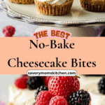 • Single Large Cheesecake: Press the crust into a 9-inch springform pan and use all the filling for one large no-bake cheesecake