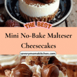These mini no-bake Malteser cheesecakes offer a creamy, smooth filling over a crunchy biscuit base, finished with chocolate and Maltesers for the perfect touch. They require no baking, are easy to prepare, and make a beautiful dessert for any occasion. Enjoy every bite!